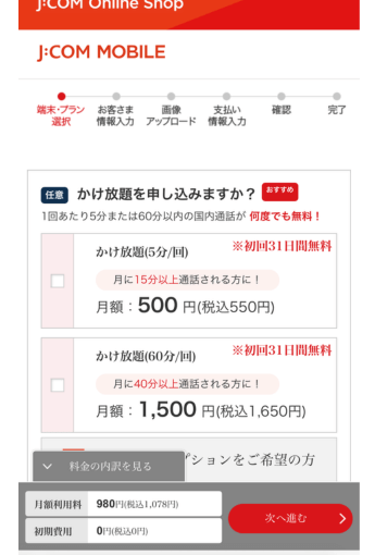 ※既にJ:COMを利用中の方は契約済みサービスで登録している支払い方法になります。