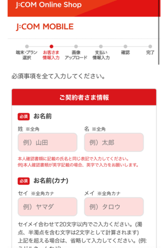 名前、住所などの情報を入力&注意事項の確認をして進めていきます。