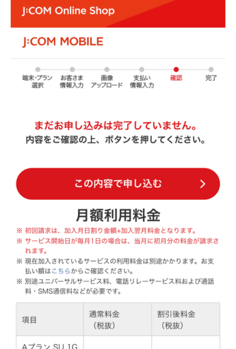 ⑥最後に「この内容で申し込む」ボタンをタップで完了!